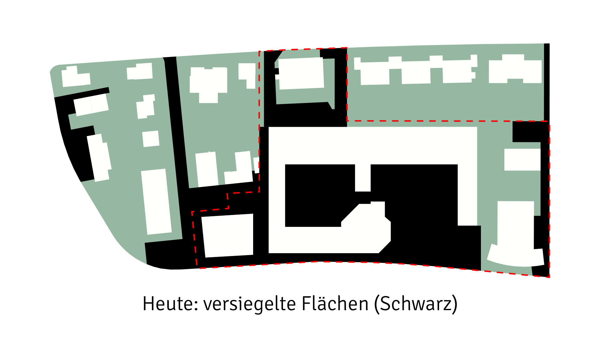 Das Areal mit einer Grösse von 12'591 m² befindet sich heute in der Gewerbezone. Um dort künftig Wohnraum, Grün- und Freiräume (knapp 50 % der Gesamtfläche) zu realisieren, ist eine Umzonung erforderlich – diese bedarf der Zustimmung der Gemeinde. Die Überlegungen der Eigentümerschaft machen deutlich: Bleibt das Areal in der Gewerbezone, wird es weiterhin einer gewerblichen Nutzung zugeführt. Ein Überblick stellt die beiden Szenarien gegenüber: